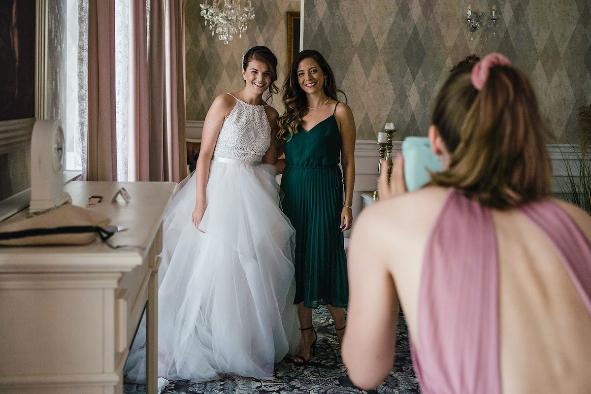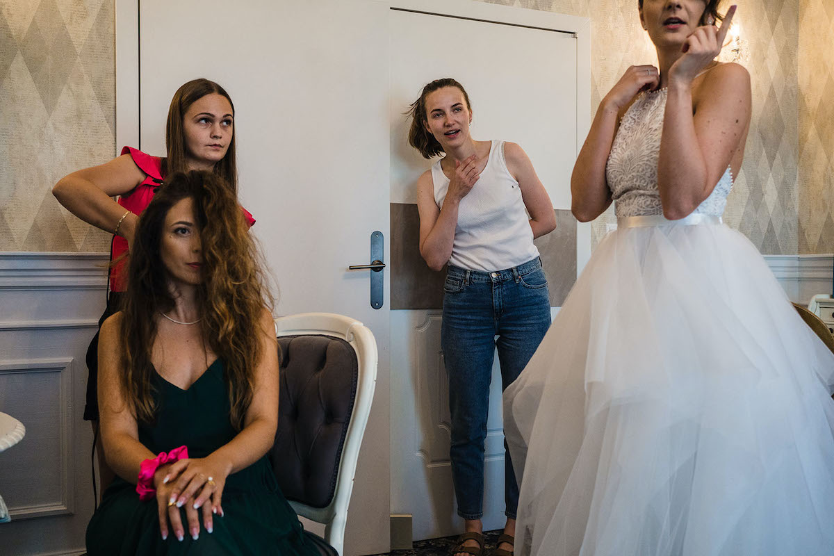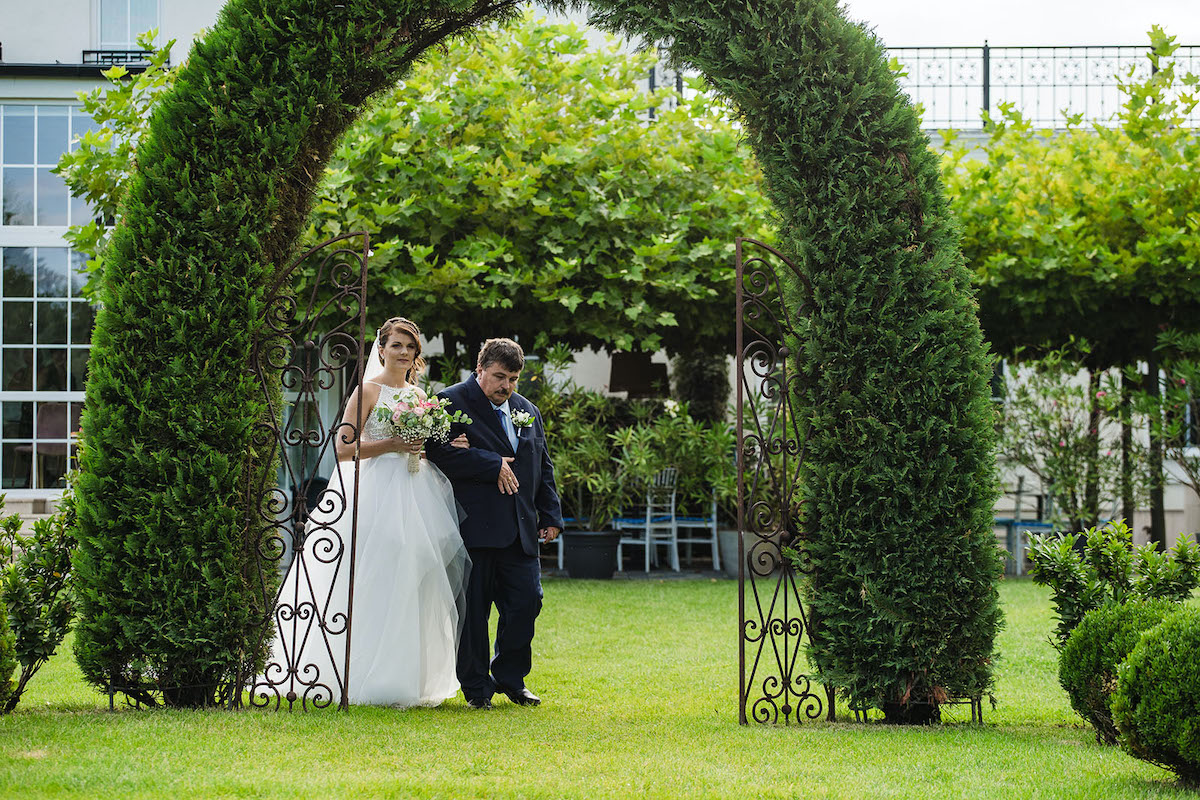 Eszti and her family lives in the surrounding area so they decided to choose a location nearby. Le Til Mansion was built a couple of years ago. It has a unique atmosphere with its classical appearance and funky interior design. It also has a swimming pool and a charming garden with an outdoor ceremony spot. So there is everything in one place to enjoy the wedding.