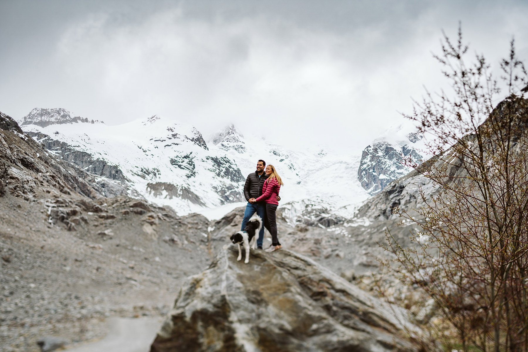 Switzerland, with its breathtaking landscapes, has long been regarded as a destination for couples looking to capture their love in a picturesque setting. Évi, Atti and their dog Fabiola, embarked on an unforgettable engagement photosession in the heart of Engadin, Switzerland. This mid-season escapade allowed them to explore multiple stunning sites. Including the Morteratsch Glacier, the town of St. Moritz, the iconic Julierpass Red Tower, and the enchanting village of Guarda.