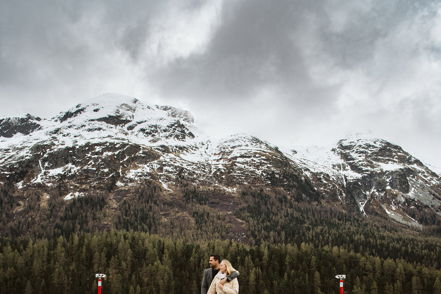 The Epitome of Luxury and Romance. No trip to Engadin would be complete without a visit to St. Moritz, the world-renowned luxury resort town. The combination of the town’s elegant architecture, sparkling lakes, and majestic mountains formed a romantic ambiance that enhanced the photoshoot.