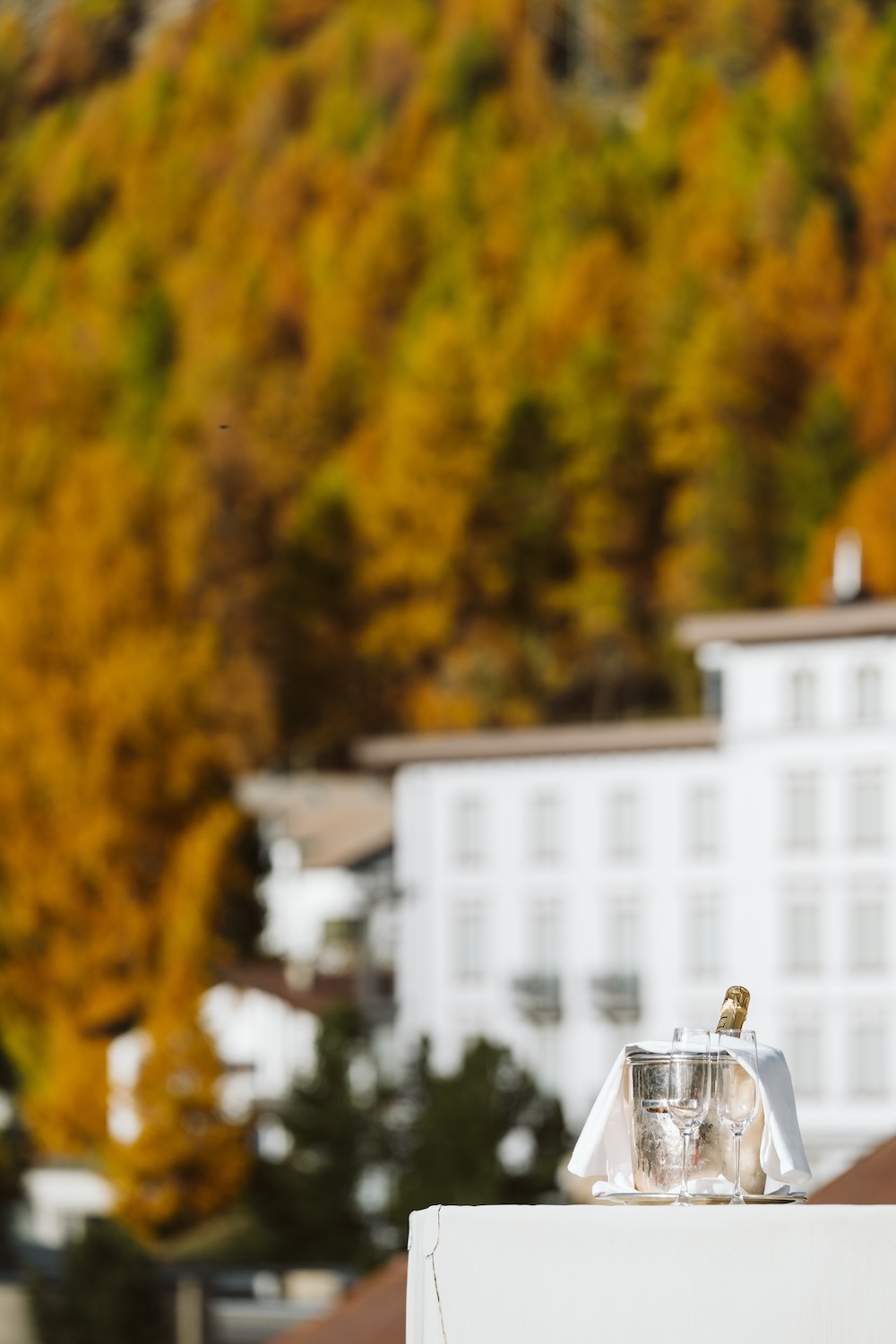 There’s something special about autumn in St. Moritz. The yellow and golden leaves create a fairytale-like atmosphere, and the quietness of the season brings an added intimacy. October’s light is soft and flattering, ideal for capturing warm, romantic moments.