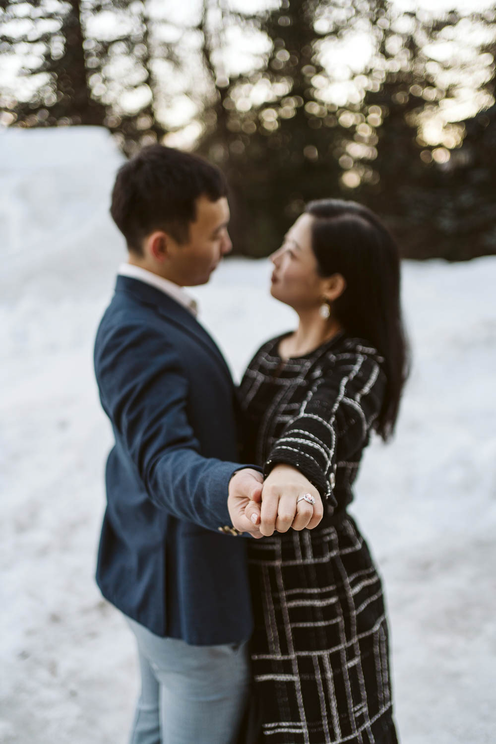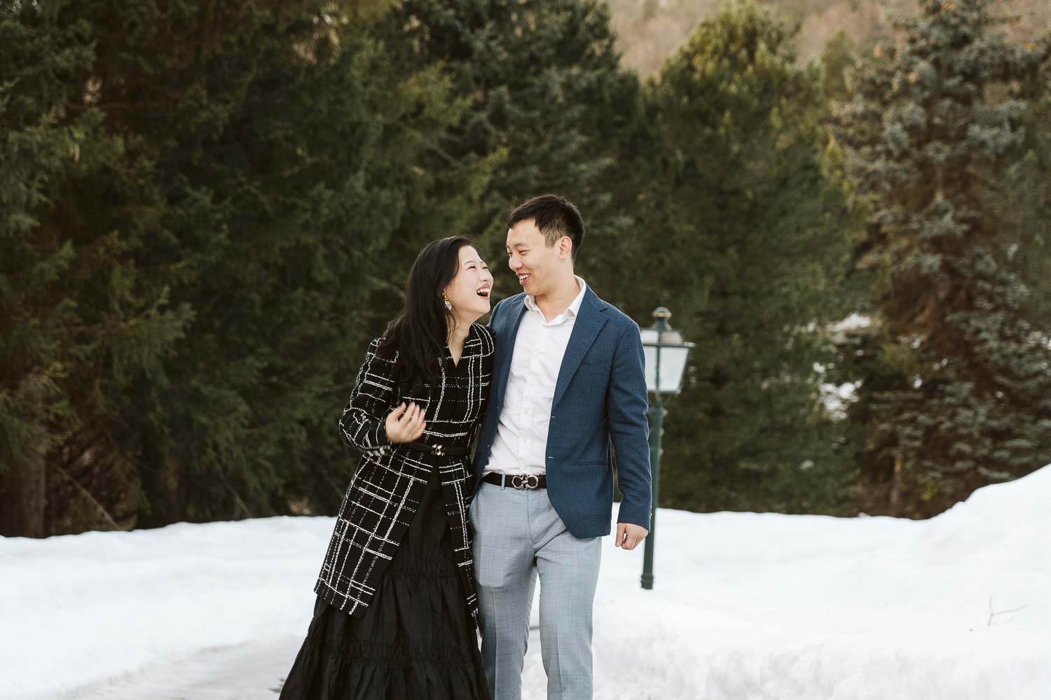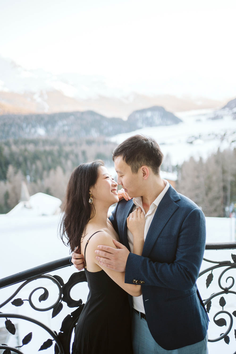 Following the joyous acceptance of the proposal, we capitalized on the breathtaking surroundings for a portrait session. The snow-covered garden, boasting panoramic views of the Swiss Alps, provided a stunning natural backdrop. Against the serene white canvas, Bill and Cindy’s love radiated, creating timeless portraits that will forever encapsulate the magic of that winter day.