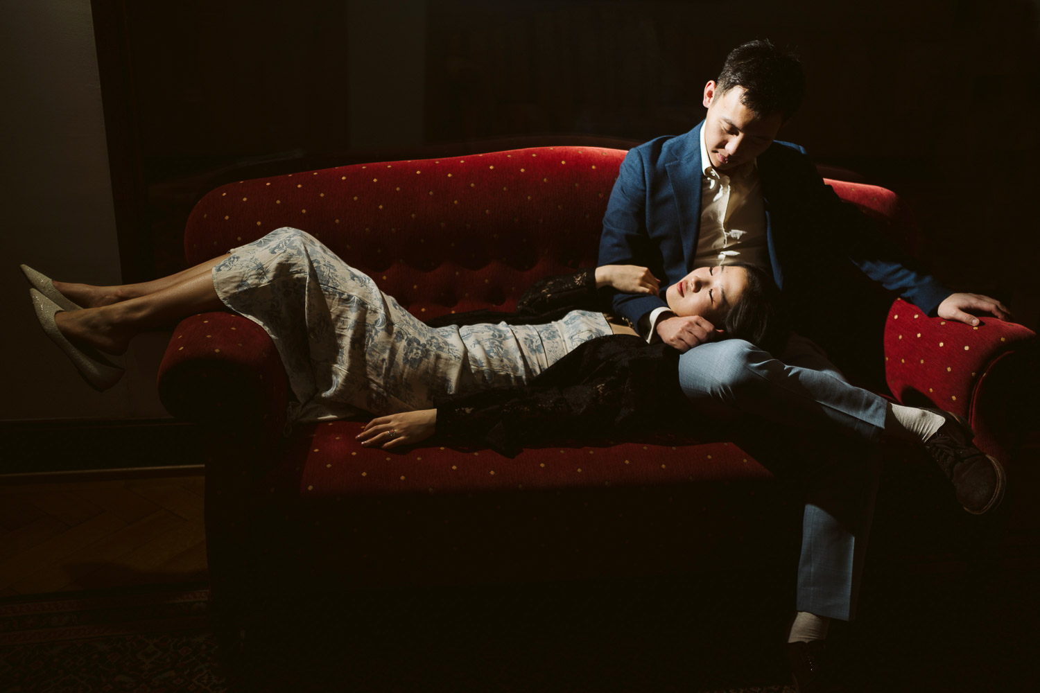 The lobby and library, adorned with timeless elegance, became a canvas for capturing the couple’s sophisticated and stylish side. The rich hues of the hotel’s interior added depth to the images, enhancing the narrative of love and commitment.